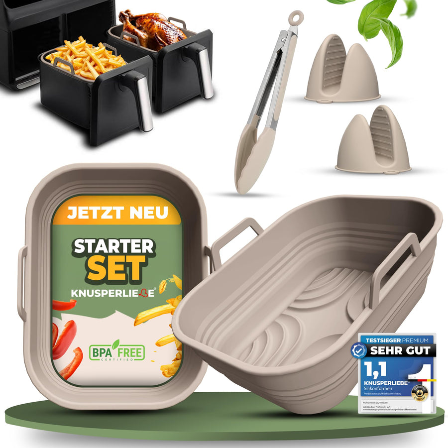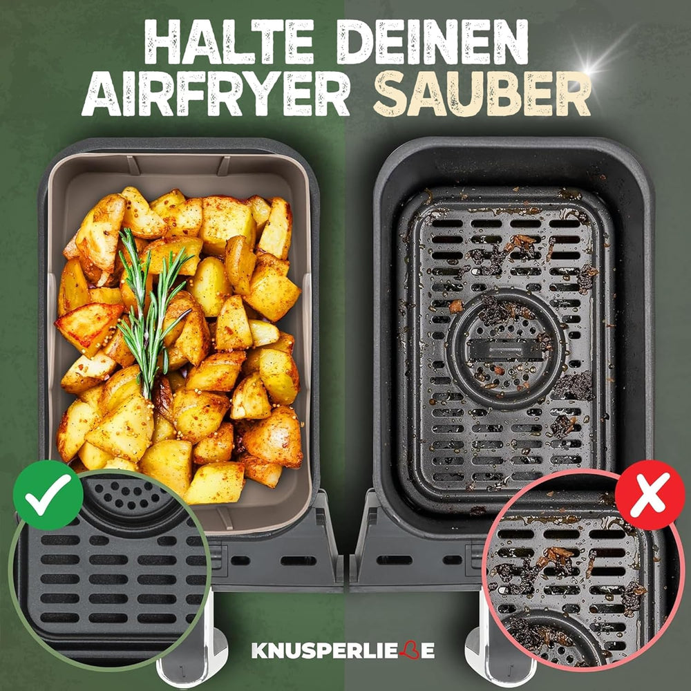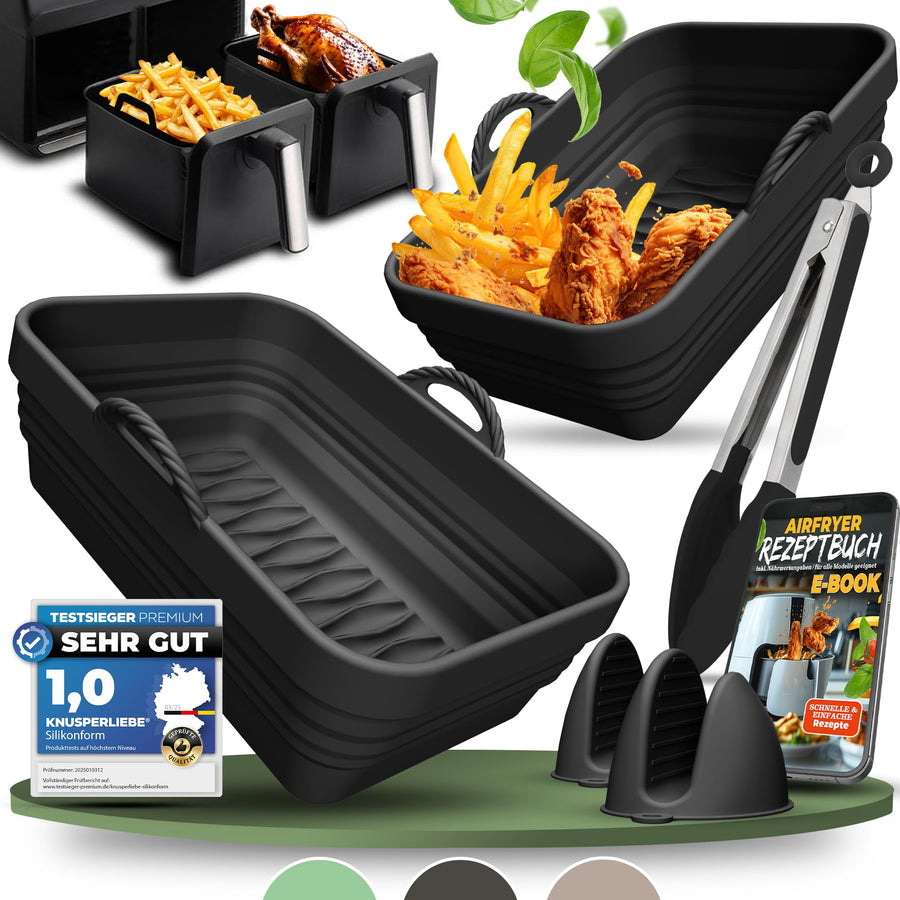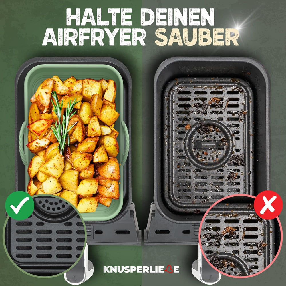 KNUSPERLIEBE® Silikonform-Set faltbar & extra dick für Heissluftfritteusen ab 3,7L-8L mit Zubehör |