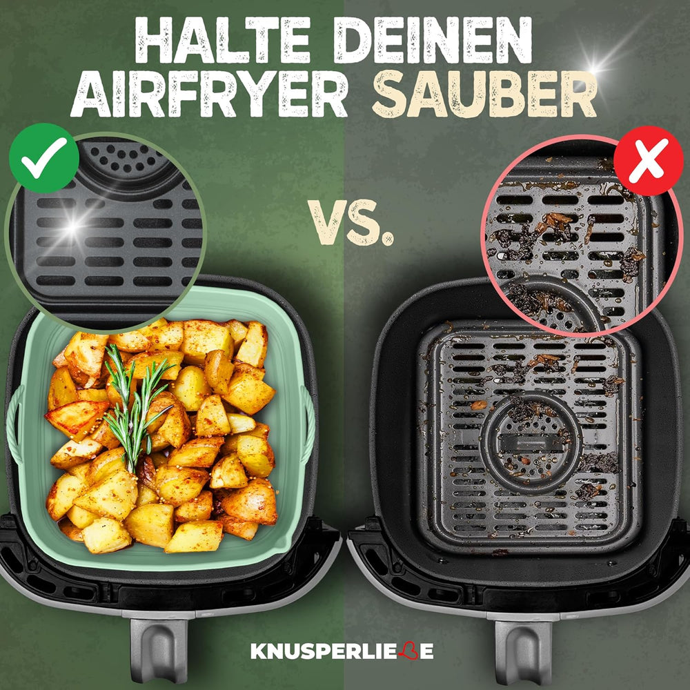 KNUSPERLIEBE® 2x Set Silikonform Faltbar für Airfryer, Heissluftfritteuse, BPA-FREI | Zubehör Ninja