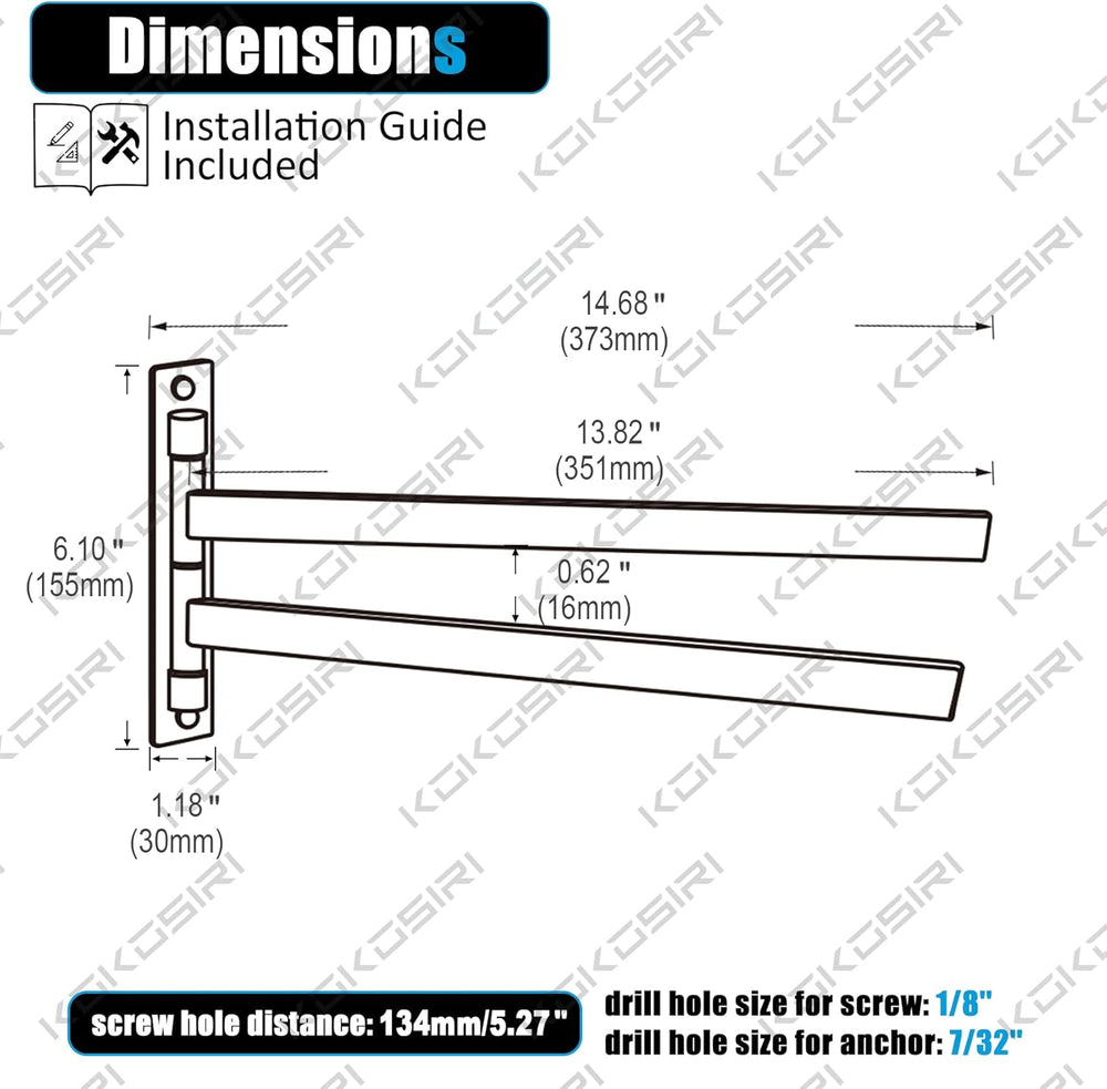 KOKOSIRI Handtuchstange Schwenkbarer Handtuchhalter Badezimmer Rack für Bad Küche Wandhalterung Hand