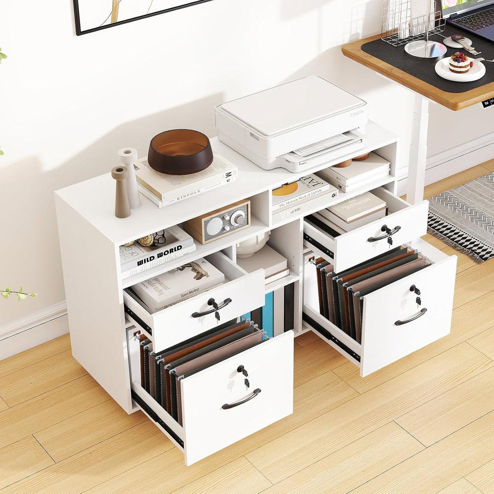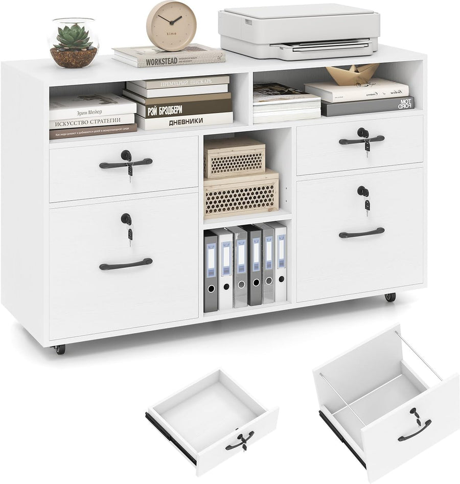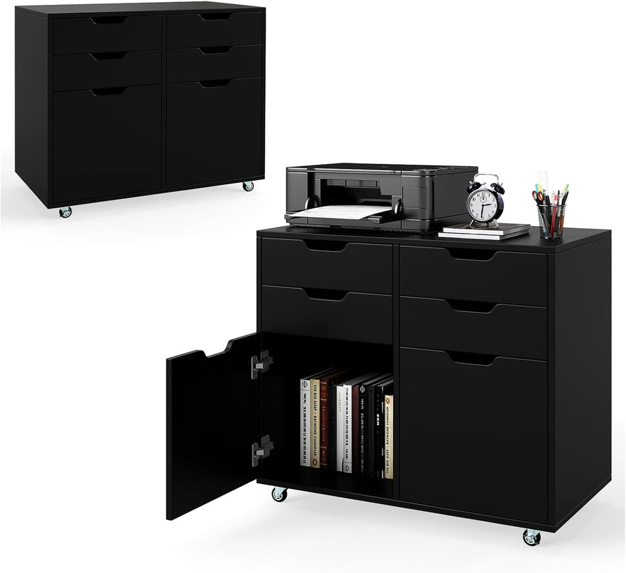 KOMFOTTEU Aktenschrank mit 5 Rollen, Rollcontainer mit 4 Schubladen & 2 Schränken mit Türen, Bürocon