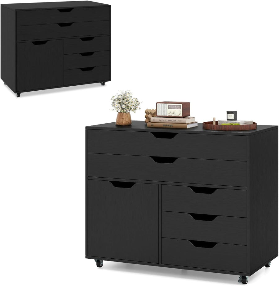 KOMFOTTEU Aktenschrank mit Rollen, Bürocontainer mit 5 Schubladen & 1 Schrank, Rollcontainer Schubla
