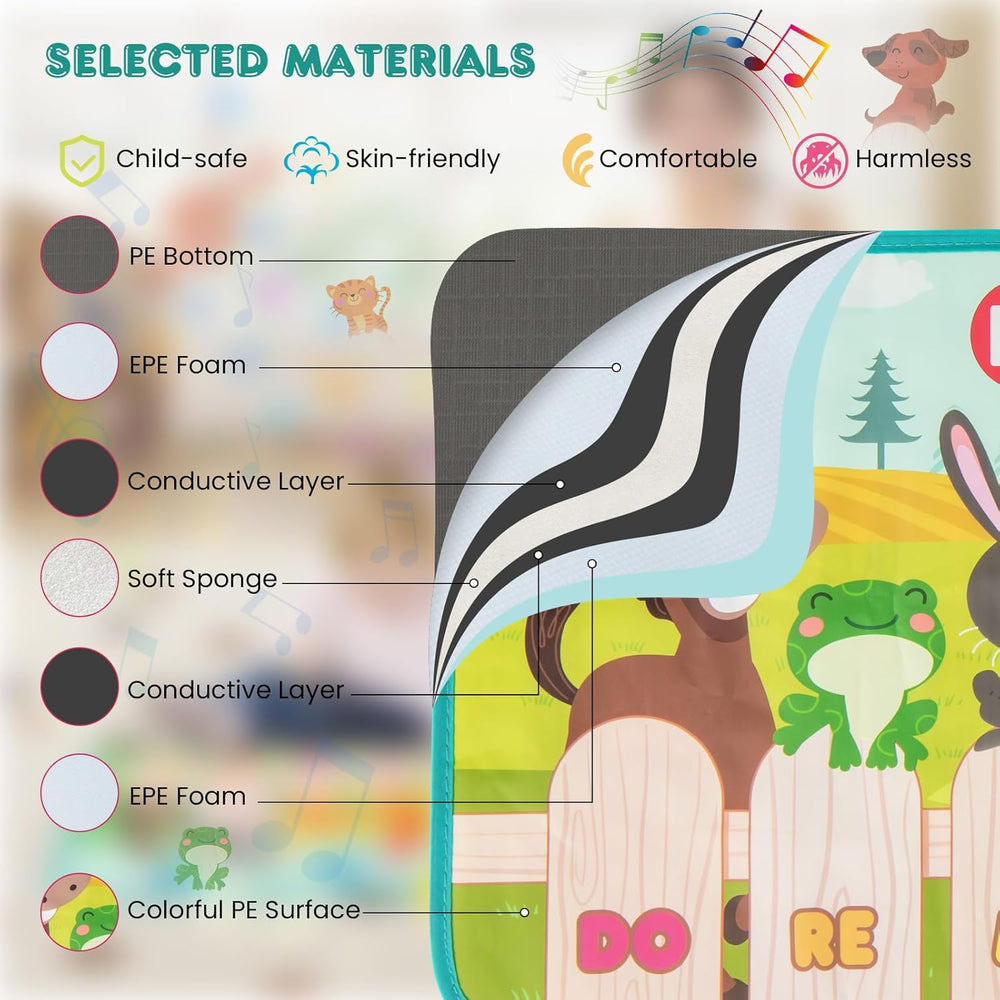 KOMFOTTEU Boden Klaviermattemit 10 Tiergeräuschen, Klaviermatte mit 10 Tasten & 10 eingebauten Liede