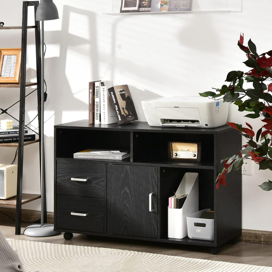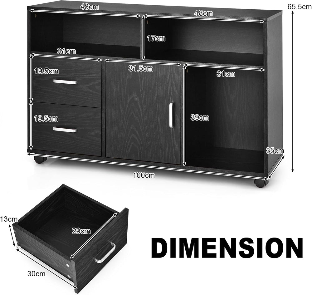 KOMFOTTEU Aktenschrank mit Rollen, Rollcontainer mit 2 Schubladen, 3 offenen Fächern und 1 Türschran