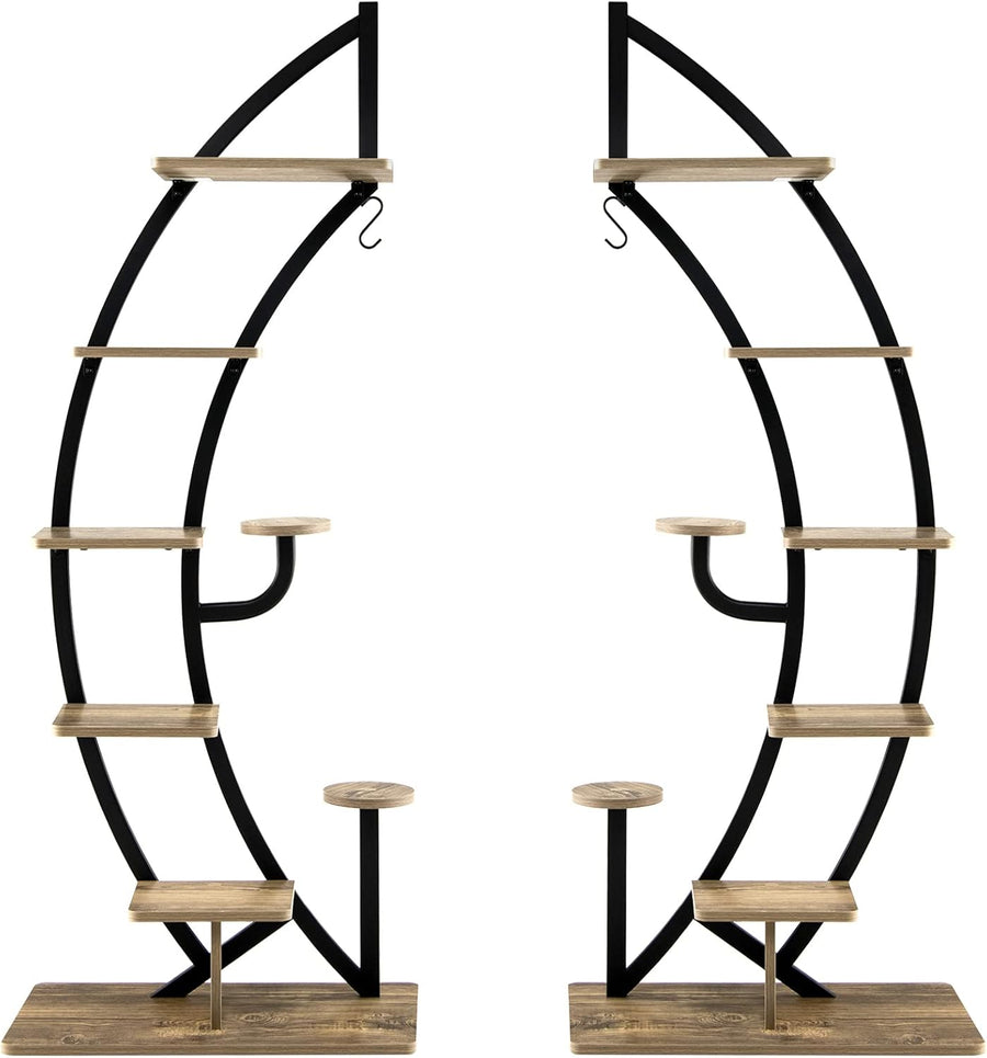 KOMFOTTEU 5-Stöckiger Pflanzenständer, Metall-Blumenständer, Pflanzentreppe mit Kippschutz, Blumentr