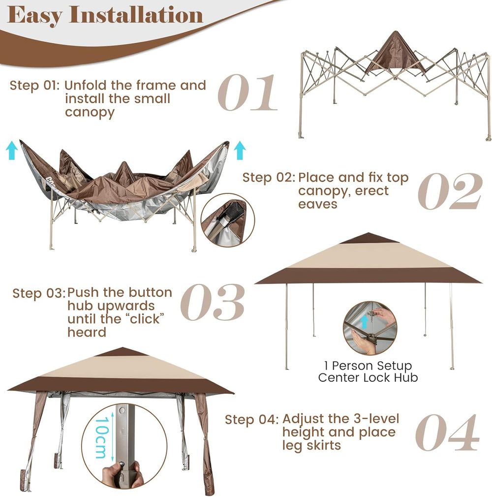 KOMFOTTEU 3.9x3.9m Gartenpavillon höhenverstellbar, Faltpavillon tragbar mit Aufbewahrungstasche & R