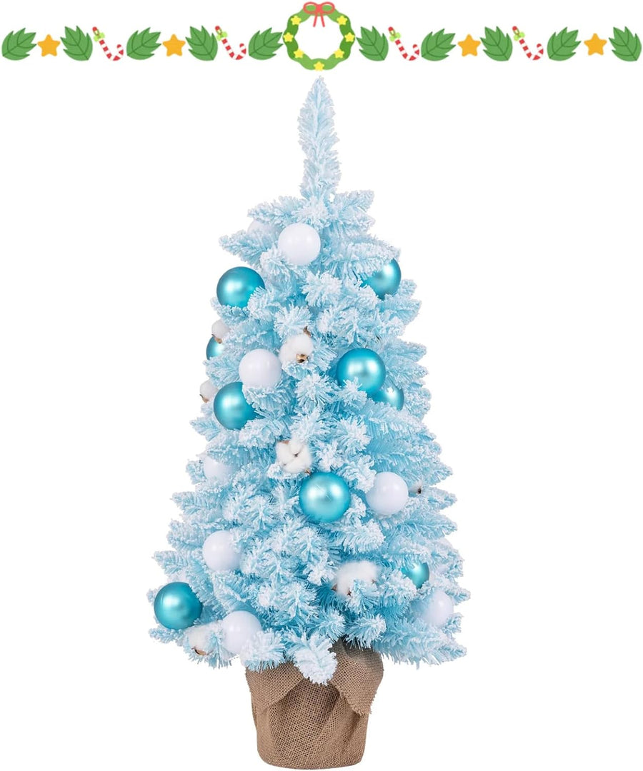 KOMFOTTEU 90 cm Künstlicher Weihnachtsbaum, Tisch Christbaum mit 24 dekorativen Kugelornamenten & 12
