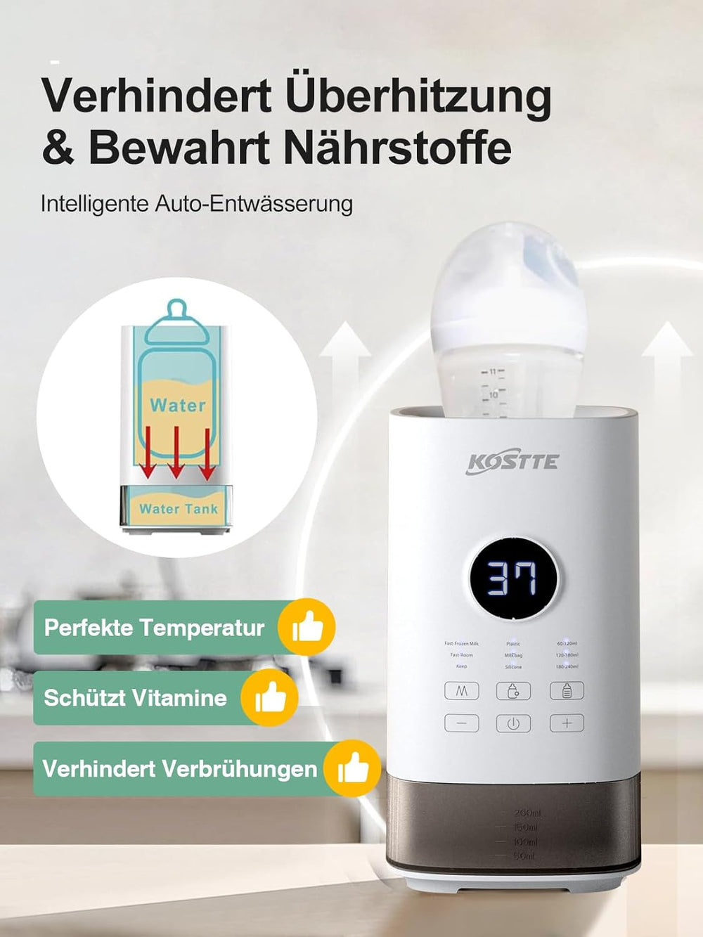 KOSTTE Flaschenwärmer Baby - Flaschenwärmer für 2 Flaschen - Babykostwärmer mit Temperatur - BPA-fre