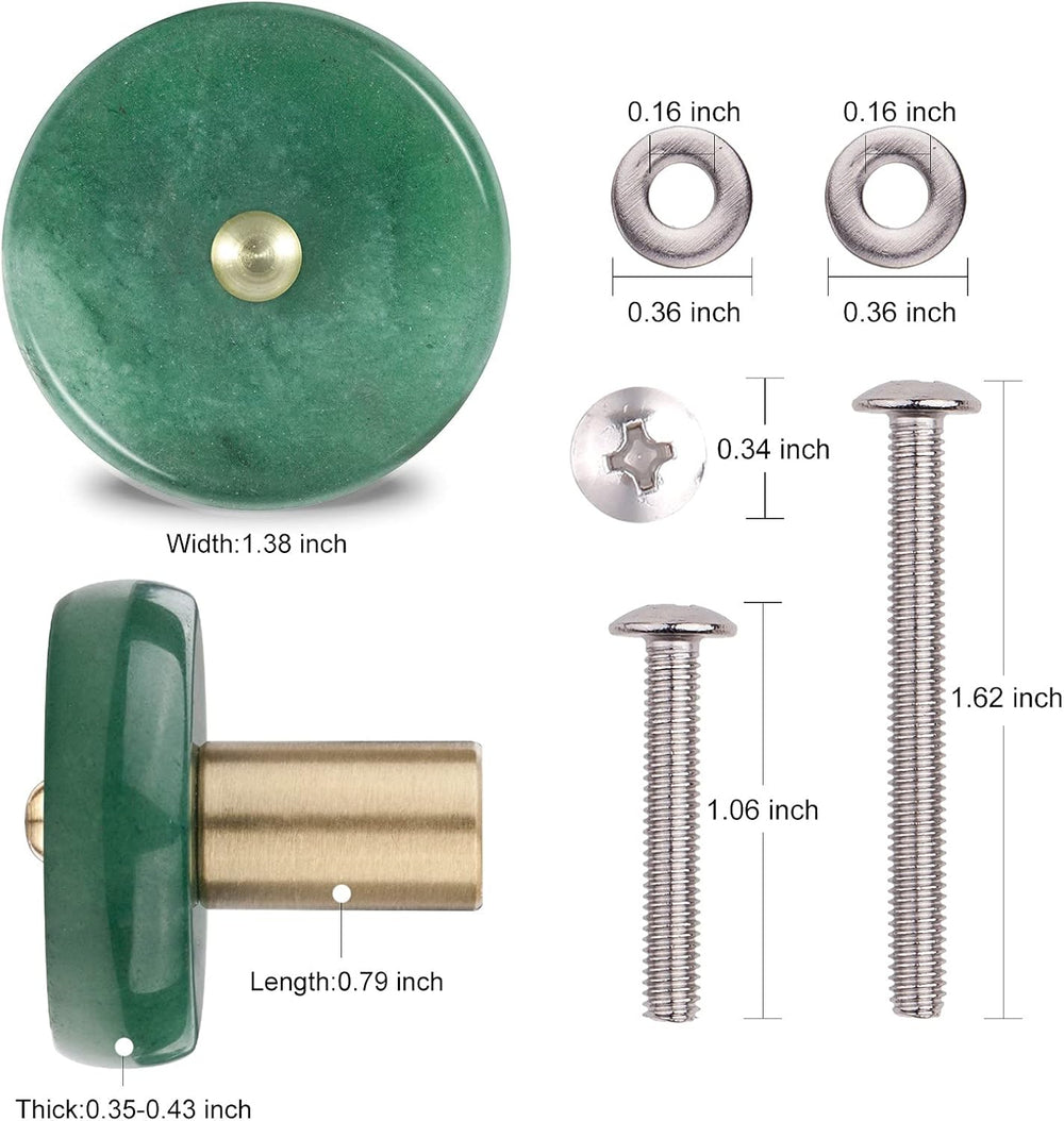 KYEYGWO 4 Stück Grüner Aventurin Natürlicher Kristall Möbelknöpfe mit Schraube, Runde Stein Schublad