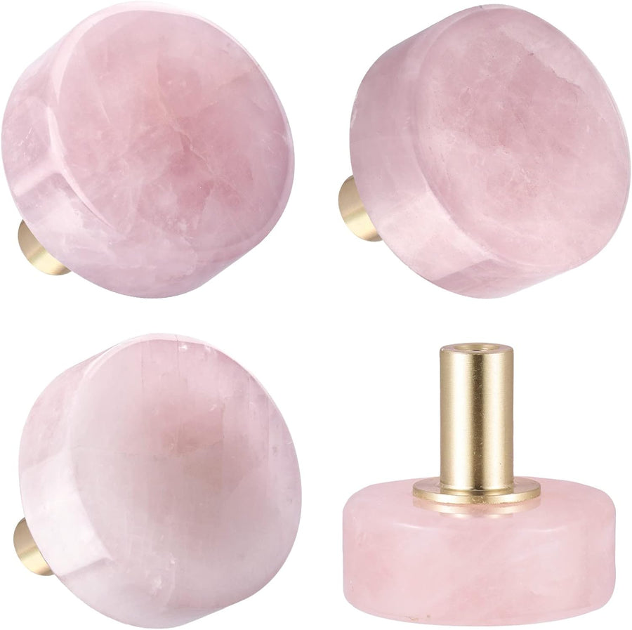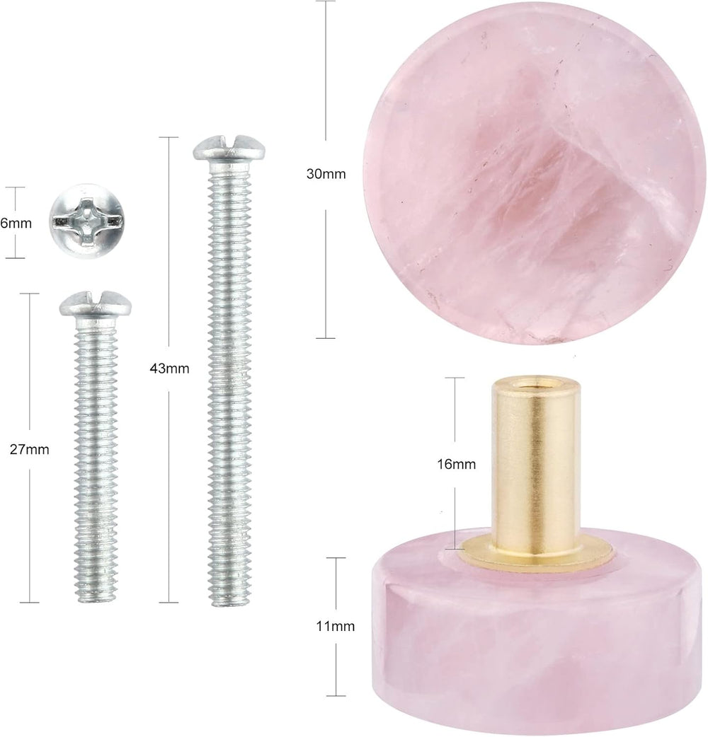 KYEYGWO 4 Stück Rosenquarz Runde Kristall Möbelknöpfe mit Schraube, Heilung Stein Schubladenknöpfe M