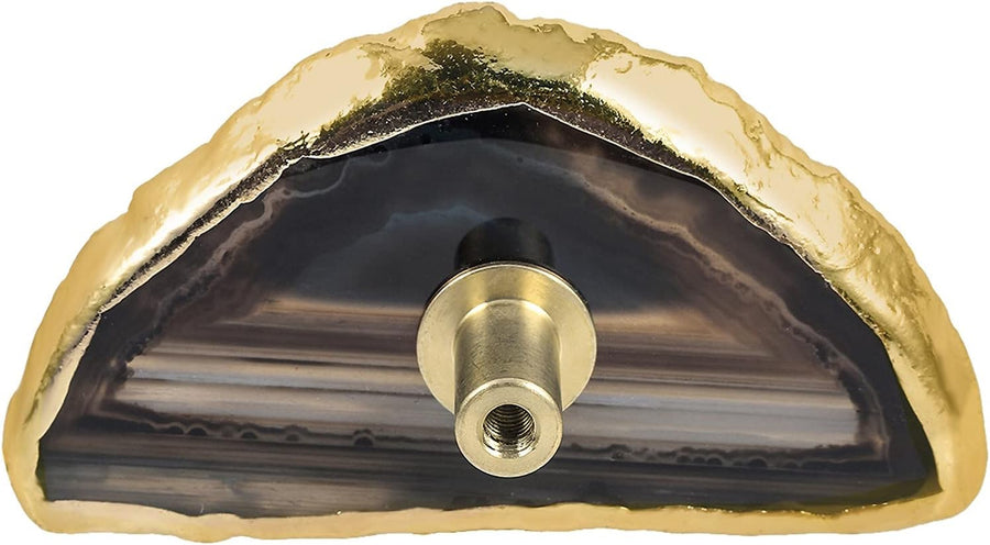 KYEYGWO 4 Stück Schwarz Unregelmässig Achat Scheiben Möbelknöpfe mit Schraube, Messing Schubladenknö