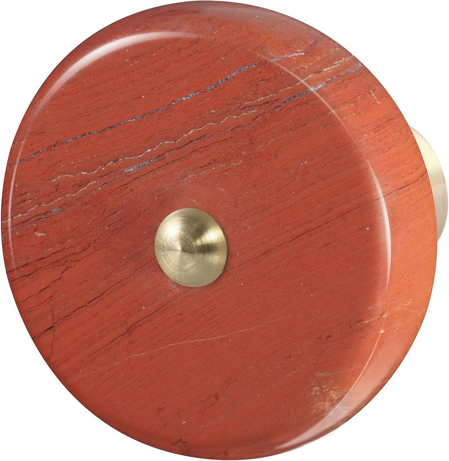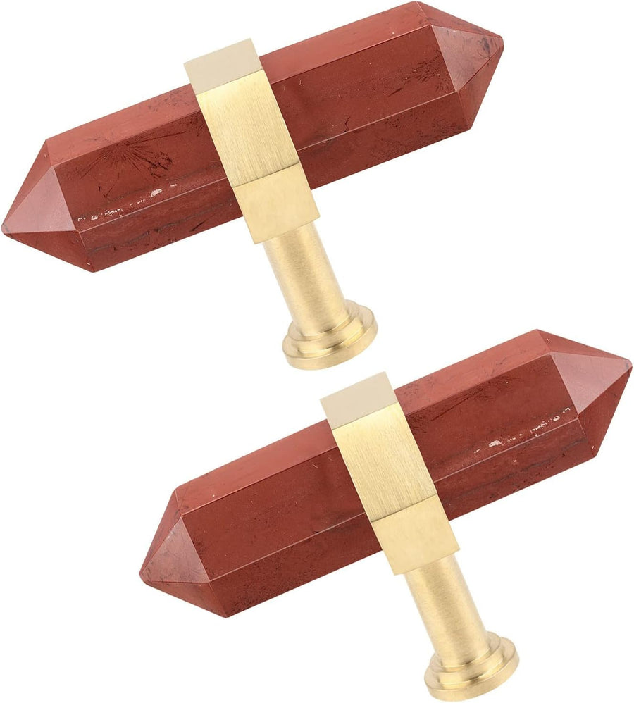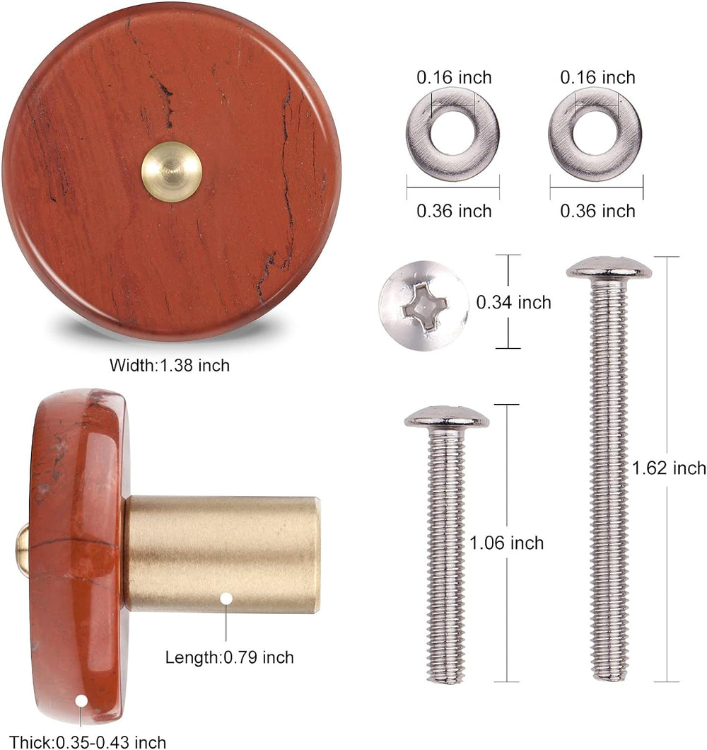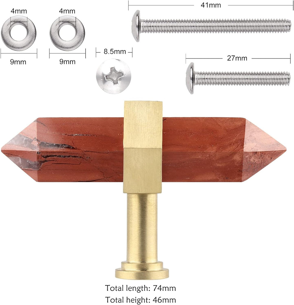 KYEYGWO 2 Stück Roter Jaspis Heilstein Punkt Möbelknöpfe mit Schrauben, Messing Schubladenknöpfe Kri