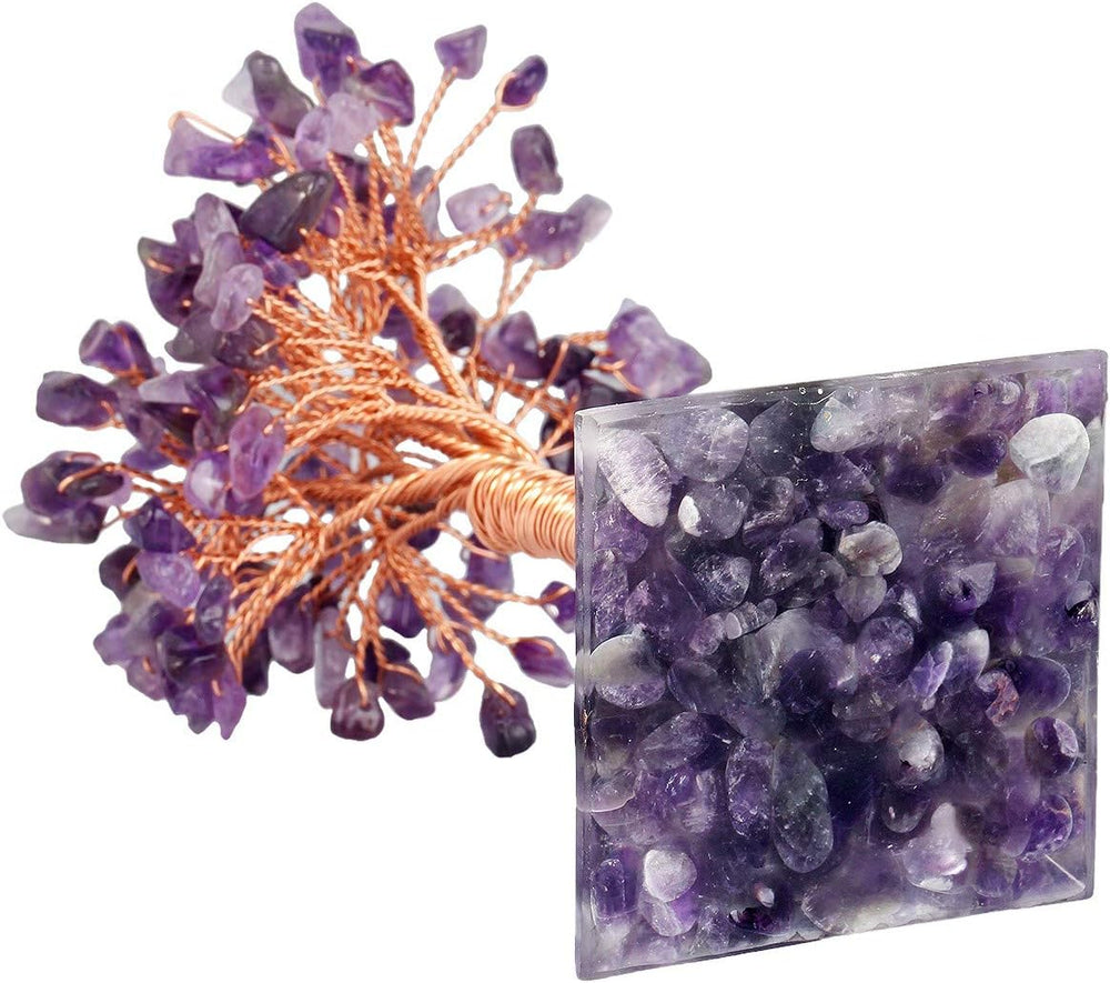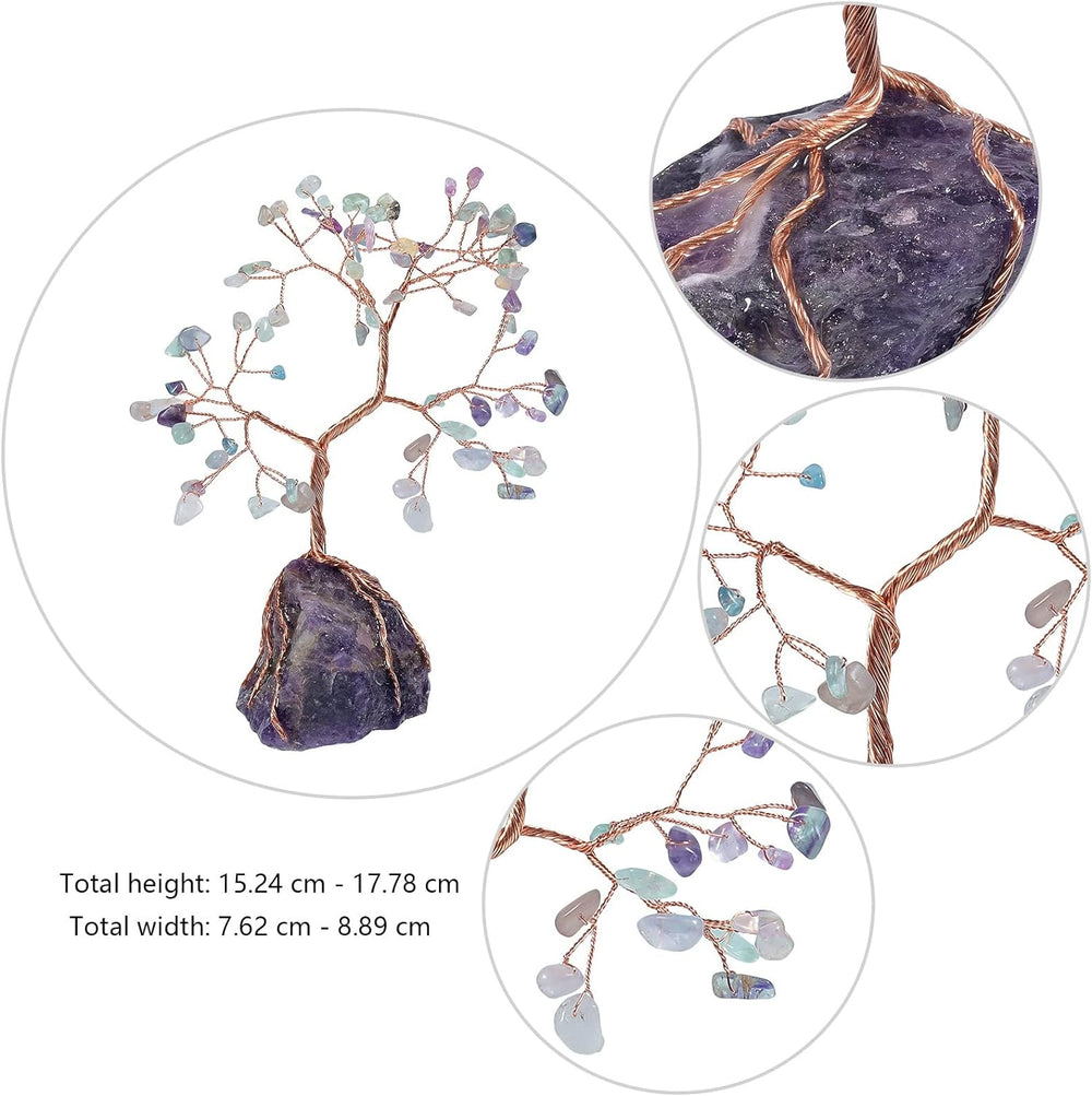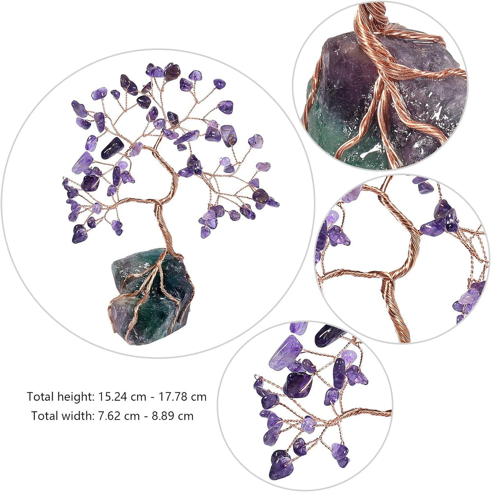 KYEYGWO Geld Baum umwickelt auf Crystal Base Bonsai Skulptur Figur für viel Glück Amethyst 7CM-13CM,