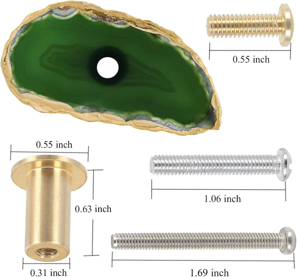 KYEYGWO 4 Stück Grün Unregelmässig Achat Scheiben Möbelknöpfe mit Schraube, Messing Schubladenknöpfe
