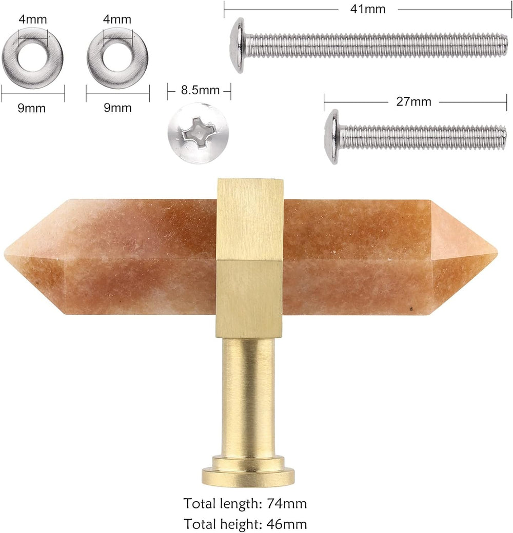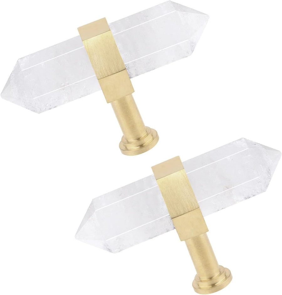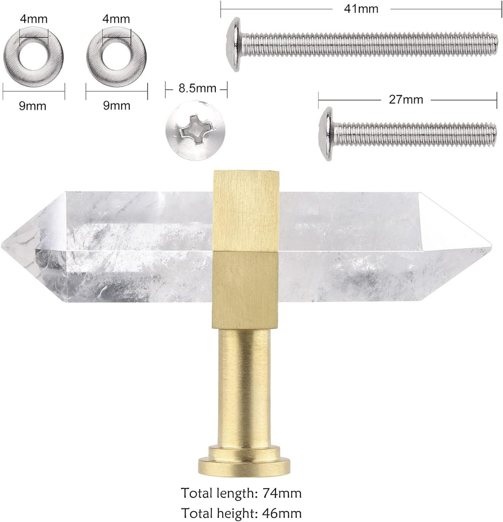 KYEYGWO 2 Stück Bergkristall Heilstein Punkt Möbelknöpfe mit Schrauben, Messing Schubladenknöpfe Kri