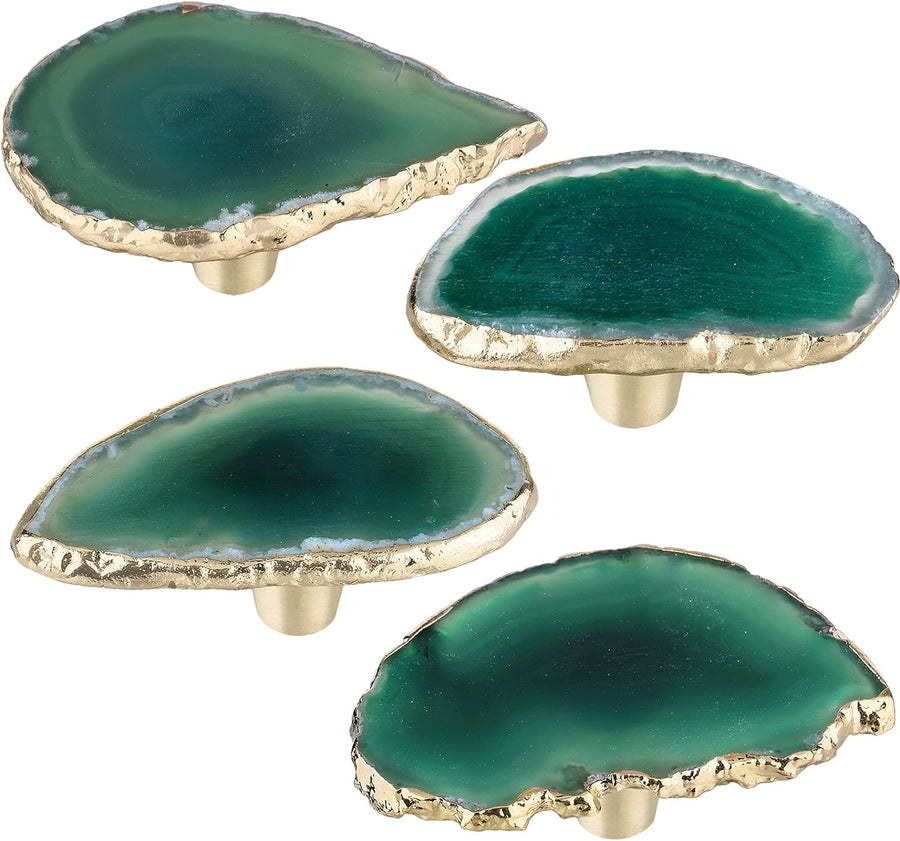KYEYGWO 4 Stück Unregelmässig Achat Scheiben Möbelknöpfe, Polierte Achate Edelstein Schubladenknöpfe
