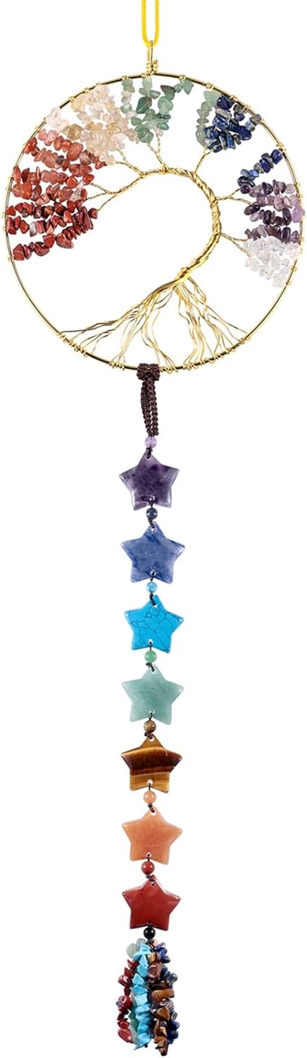 KYEYGWO 7 Chakra Stein Baum des Lebens Hängen Deko, Heilung Kristall Wand Hängende Ornament Achat Sc