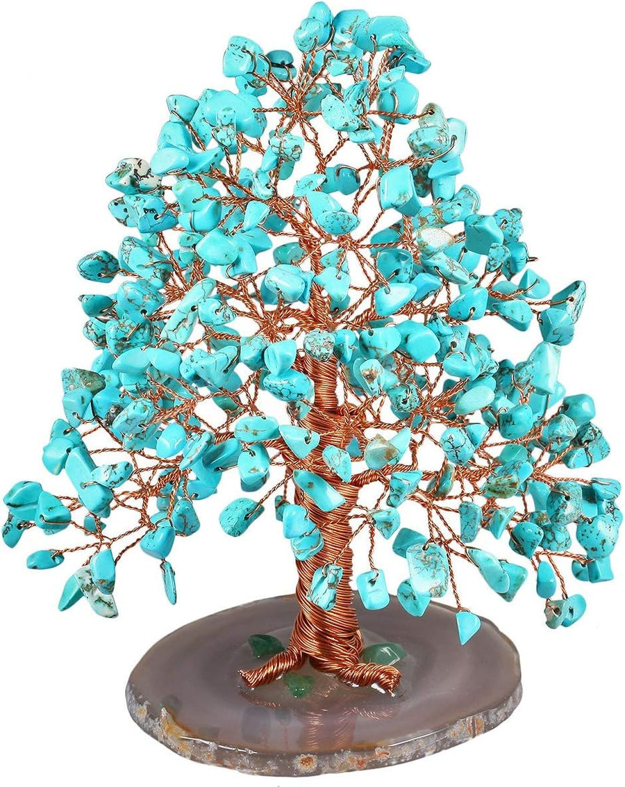 KYEYGWO Geld Baum umwickelt auf Crystal Base Bonsai Skulptur Figur für gutes Glück 3,5 Zoll Fluorit
