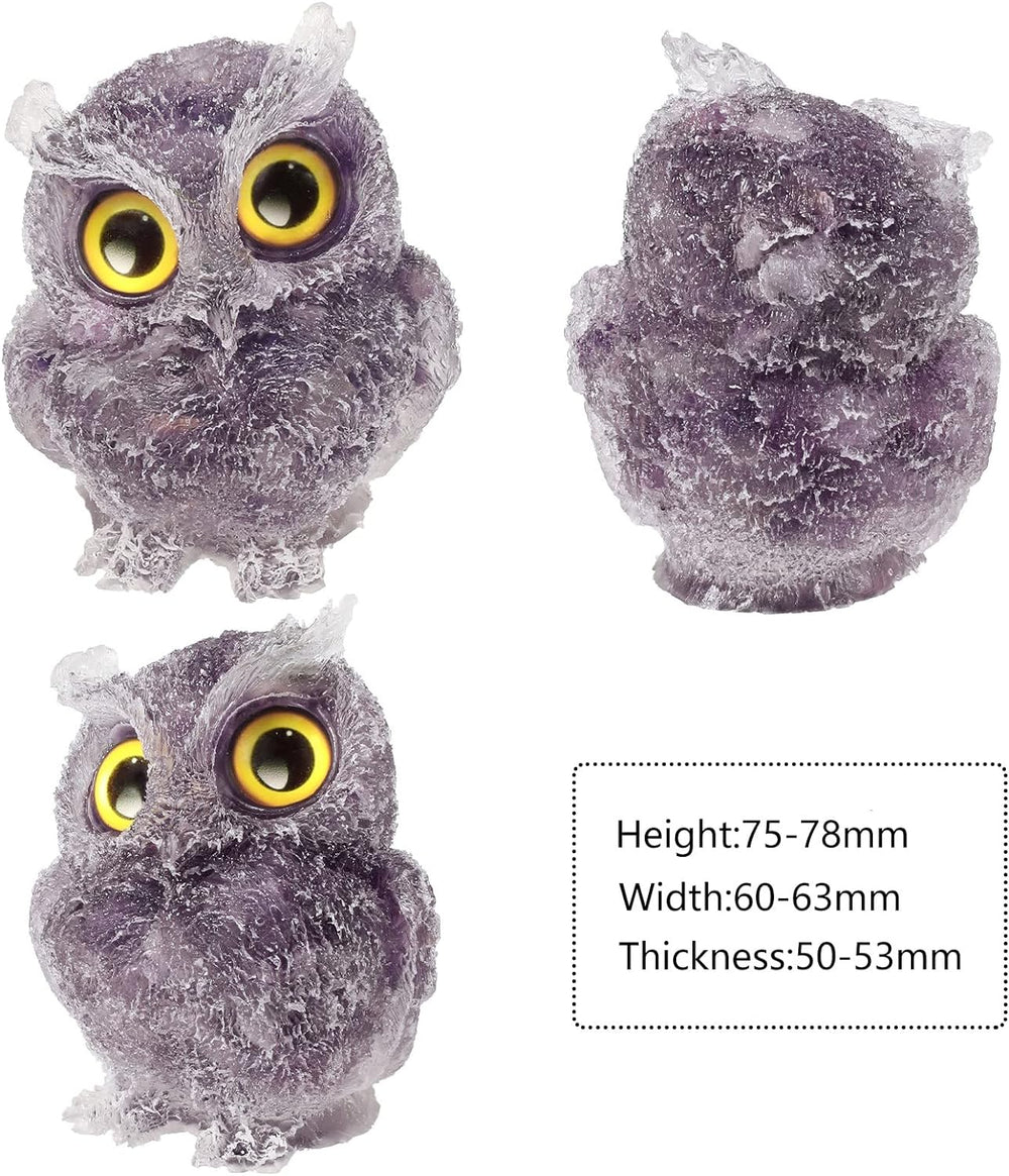 KYEYGWO Amethyst Nette Kristall Eule Figur Ornamente, Mini Stein Käuzchen Statuen Harz Tier Skulptur