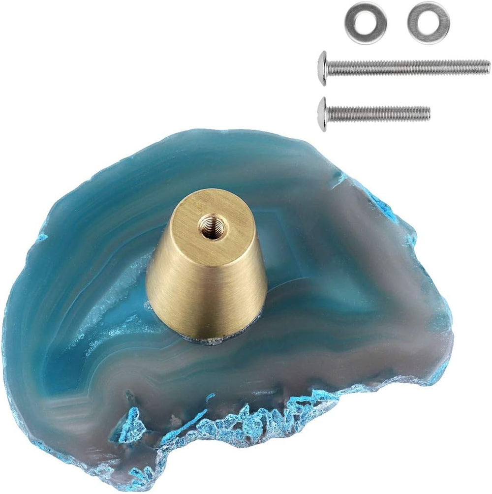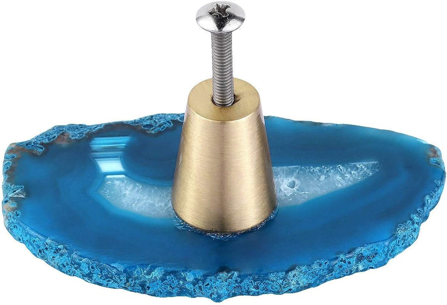 KYEYGWO 4 Stück Blau Unregelmässig Achat Scheiben Möbelknöpfe mit Schraube, Messing Schubladenknöpfe