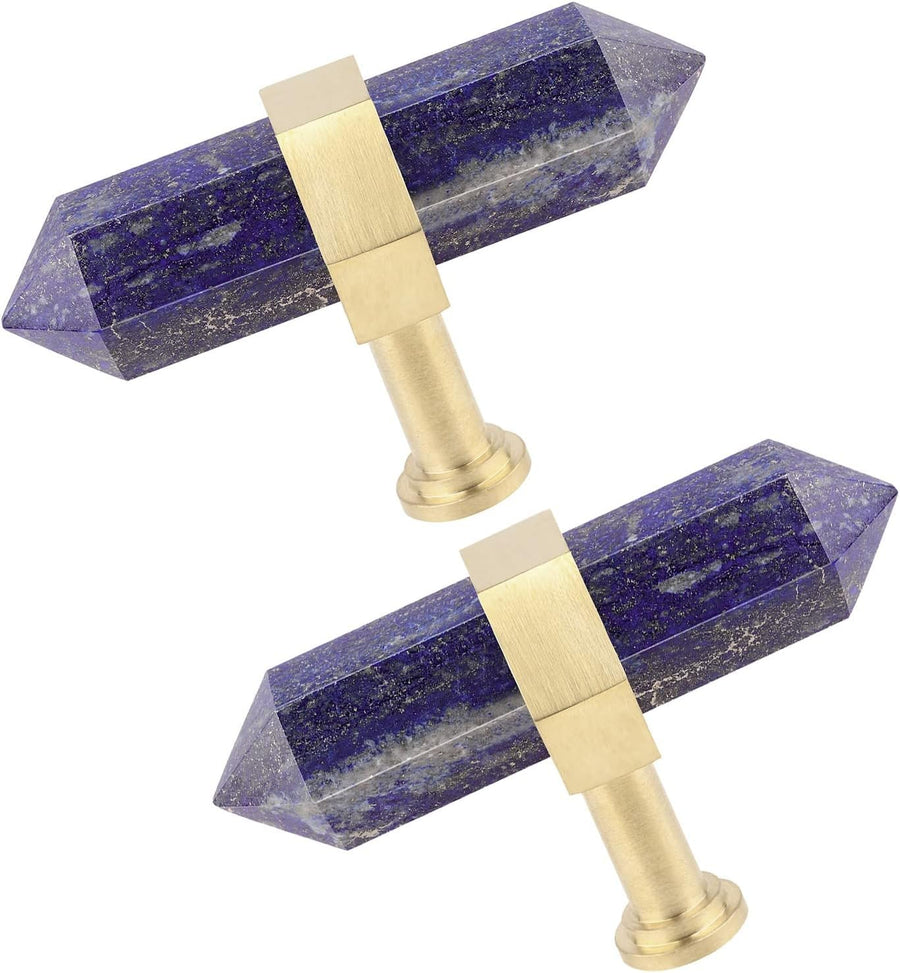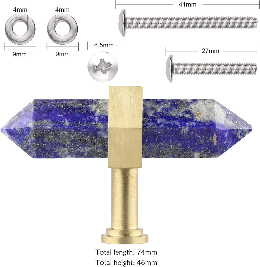 KYEYGWO 2 Stück Lapislazuli Heilstein Punkt Möbelknöpfe mit Schrauben, Messing Schubladenknöpfe Kris