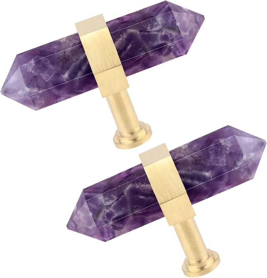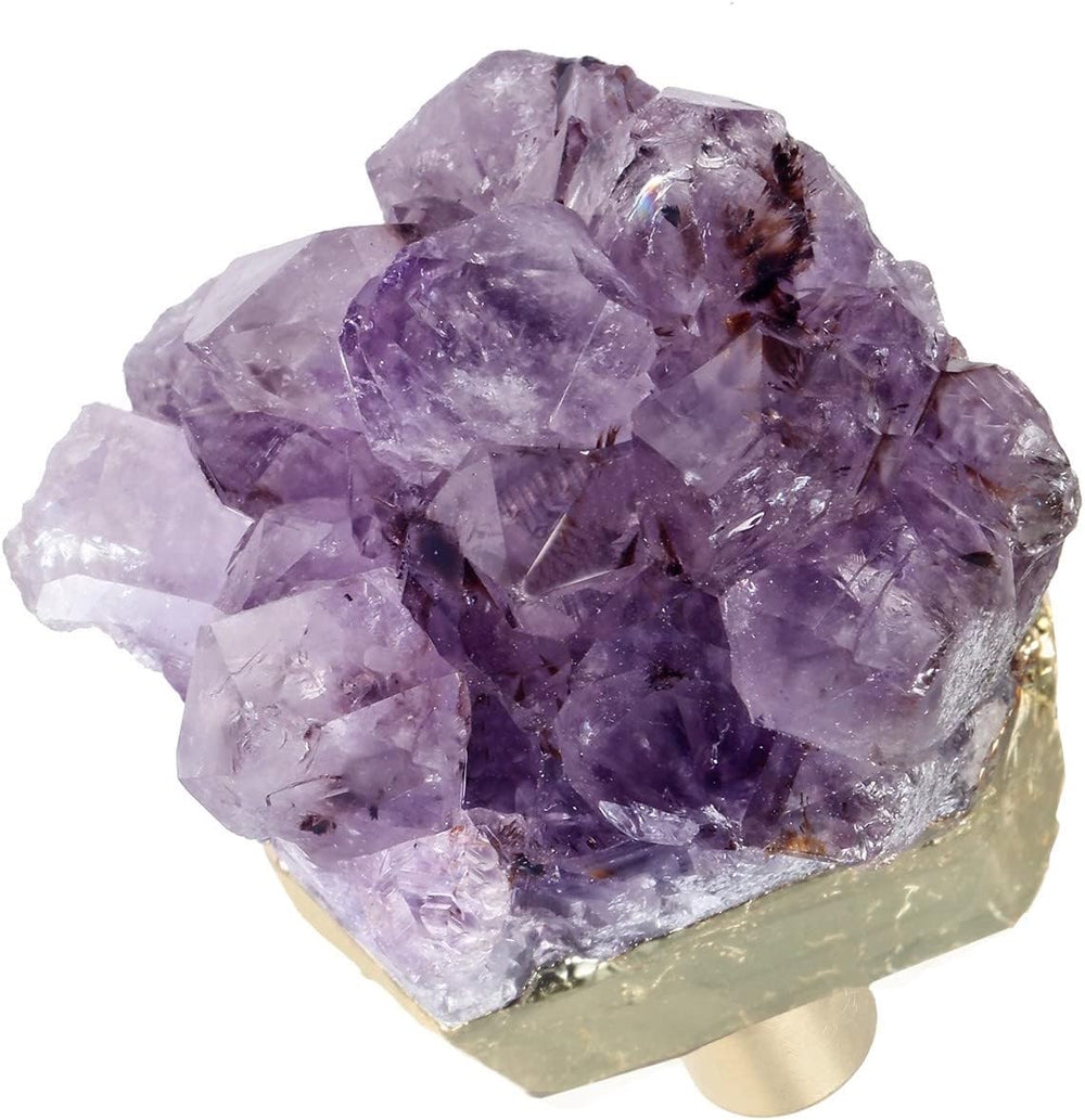 KYEYGWO 2 Stück Amethyst Heilstein Punkt Möbelknöpfe mit Schrauben, Messing Schubladenknöpfe Kristal