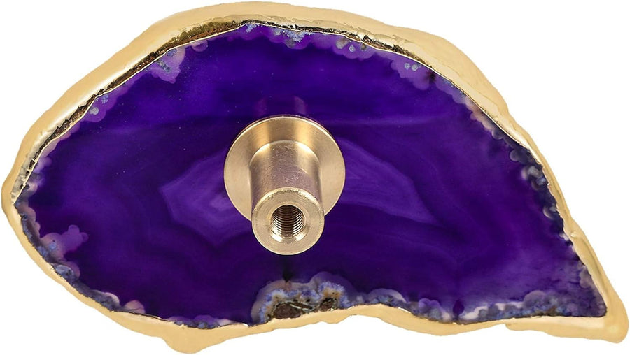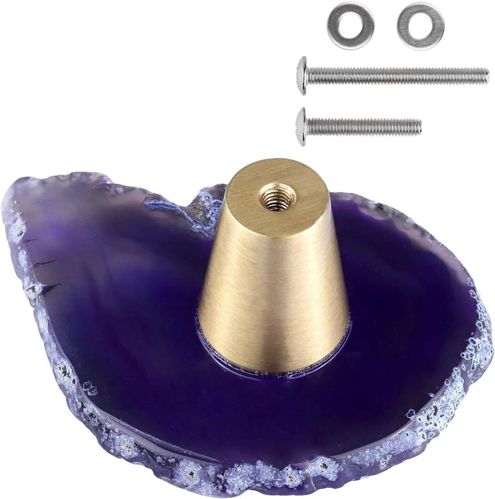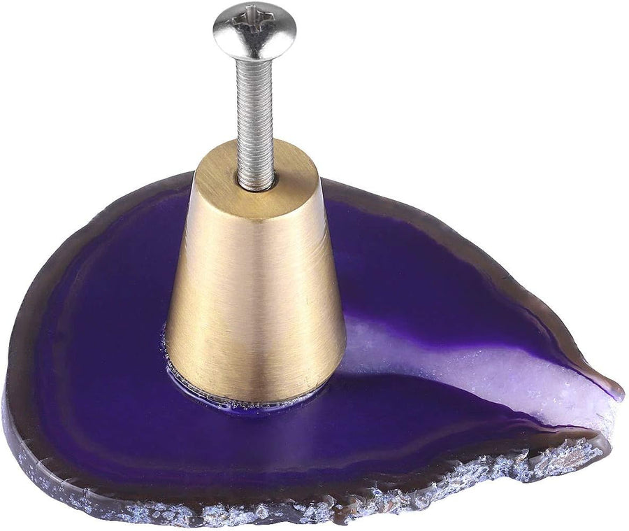 KYEYGWO 4 Stück Violett Unregelmässig Achat Scheiben Möbelknöpfe mit Schraube, Messing Schubladenknö