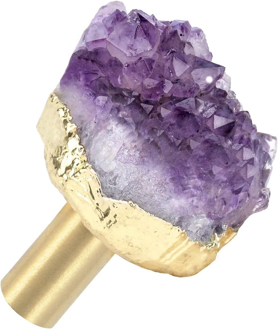 KYEYGWO 4 Stück Natürlich Amethyst Drusen Möbelknöpfe, Unregelmässig Kristall Schubladenknöpfe Stein