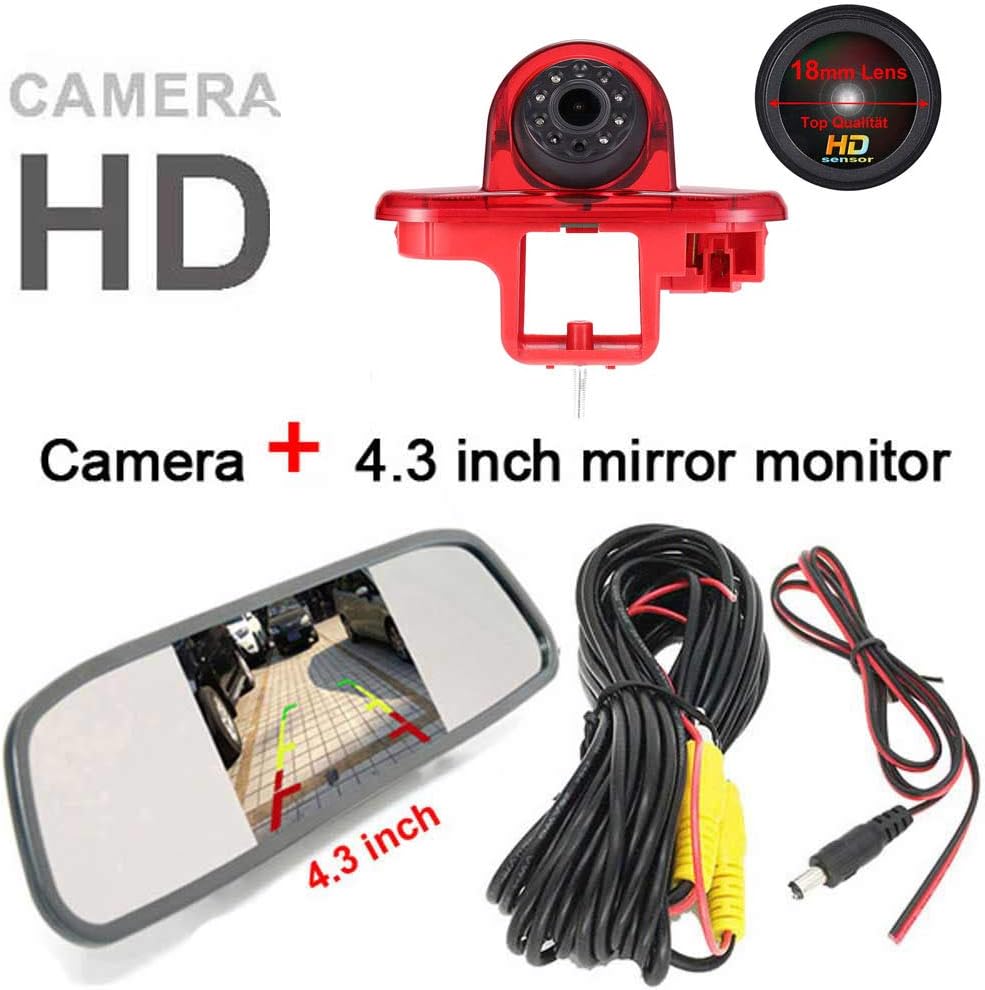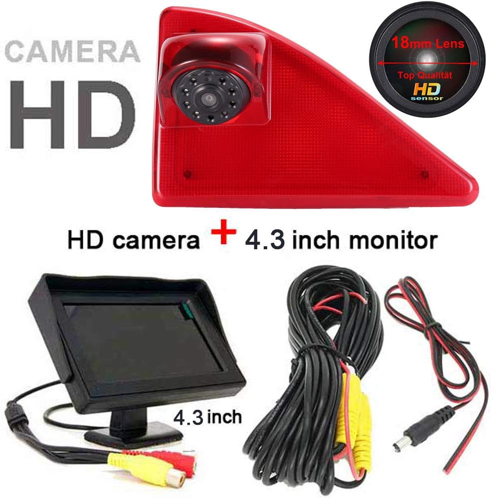 4.3 Zoll Monitor + im 3.Bremslicht Bremsleuchte Rückfahrkamera Transportster Ersatz für Transporter