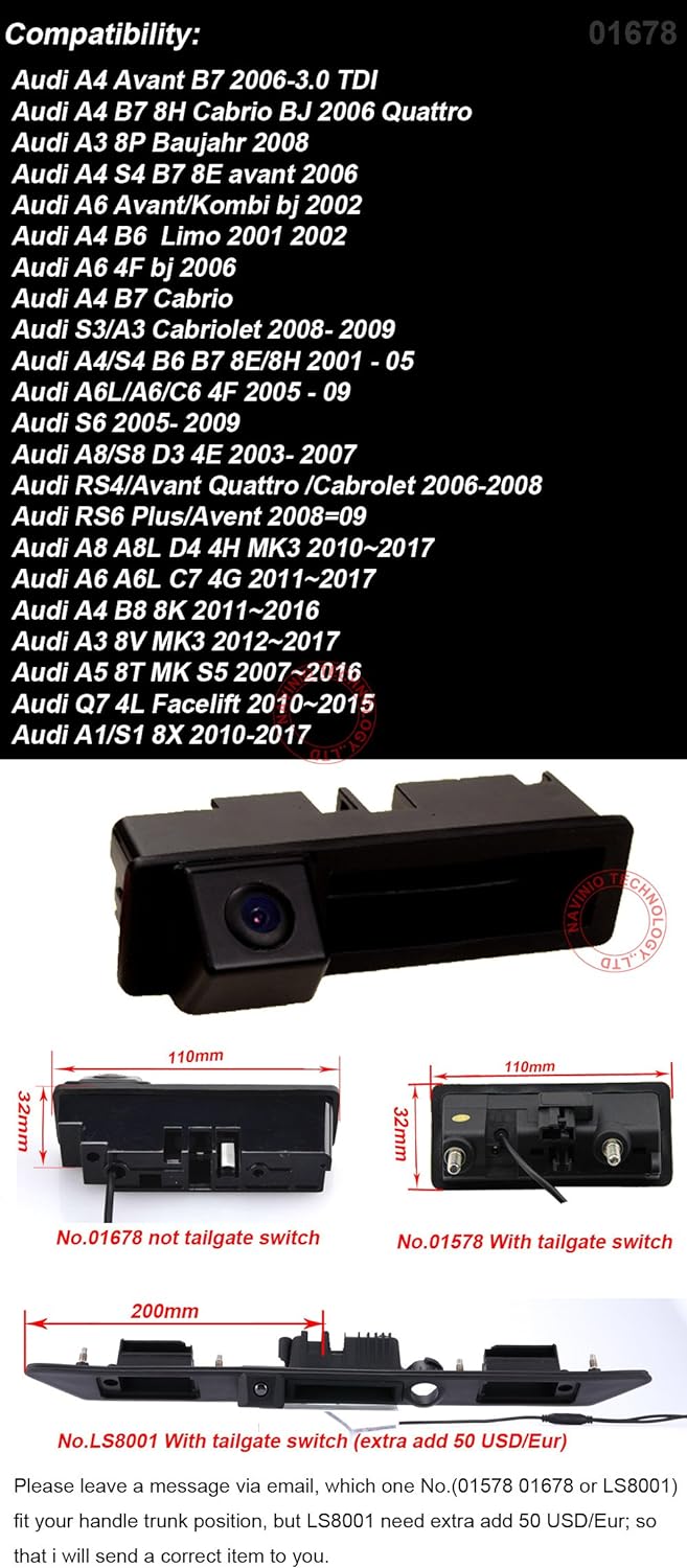 HD Kofferraumgriff Rückfahrkamera Einparkkamera Kompatibel mit Audi A3 A4L S4 A5 S5 Q3 Q5 A6 A7 A6L