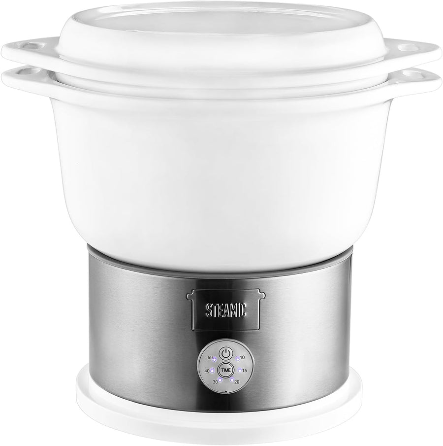 Team Kalorik elektrischer 4,5 l Keramik-Dampfgarer, 700 W, BPA-frei, Weiss/Silber, TKG DG