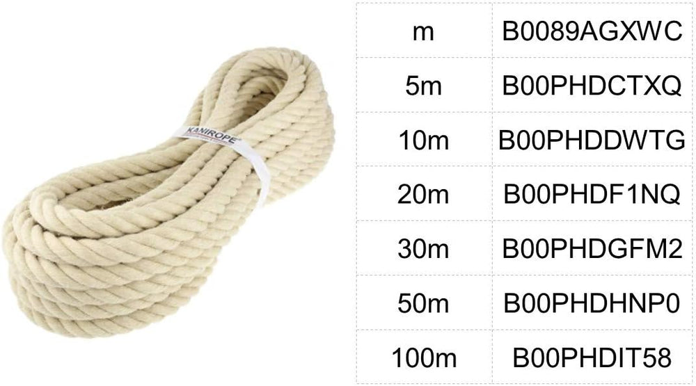 Kanirope® Baumwollseil COBRAID 10mm 20m Farbe Cremig Weiss 16-fach geflochten 20m Cremig Weiss, 20m