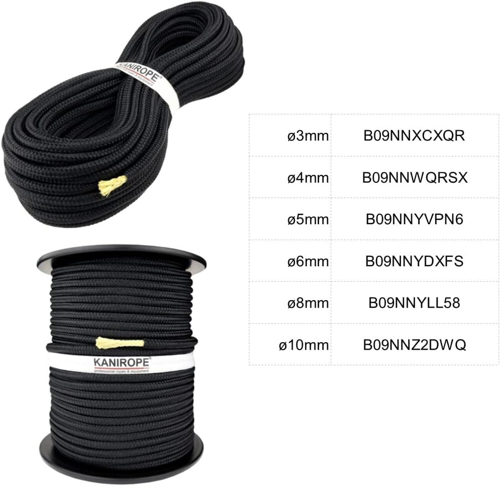 Kanirope® Polyesterseil mit Aramidkern Kevlarseil Seil PARABRAID 4mm 10m Schwarz geflochten, 10m