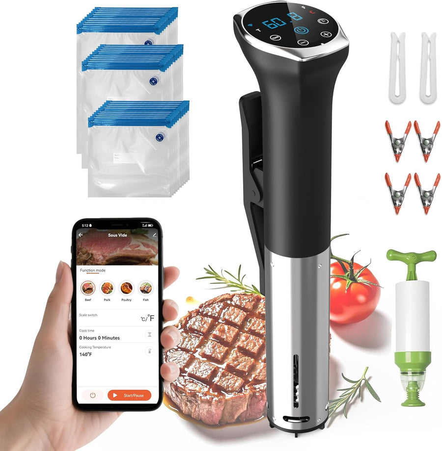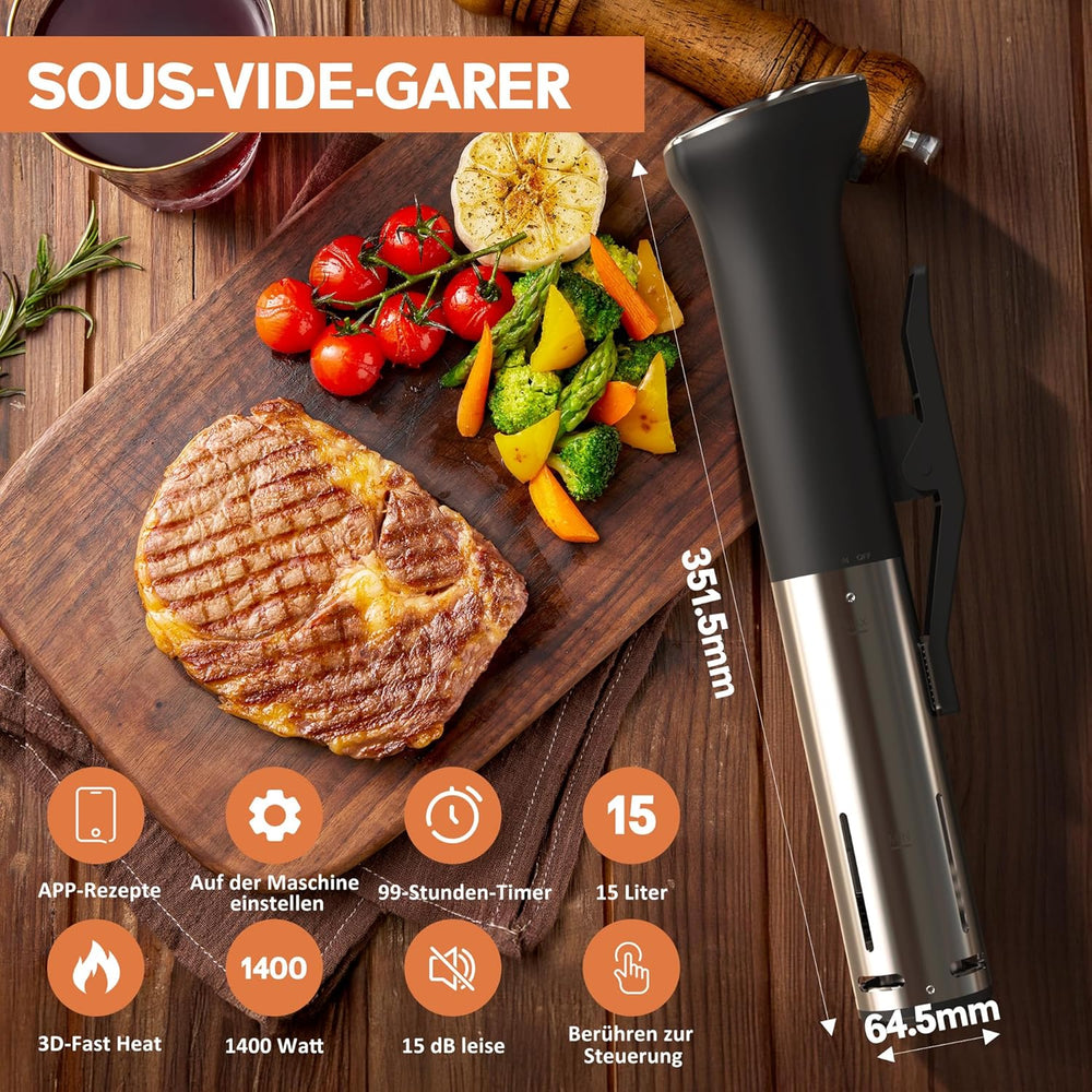Karinear Sous Vide Garer Stick mit Vakuumbeutel-Set | APP-Steuerung | WIFI (2.4G) | 1400W Sous-Vide
