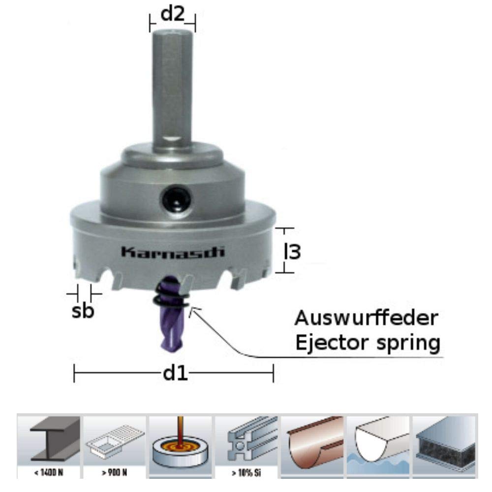 Karnasch KARNASCH Stichsäge mit Hartmetall mit Zentrierbohrer und Feder Eyector, 70mm Diámetro, 60mm