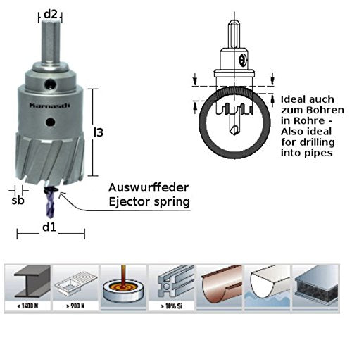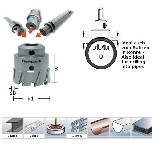 KARNASCH 201650041 Hard-Line80 Kernbohrer mit Hartmetall, Weldon-Griff, 41 mm Schnittdurchmesser, 80