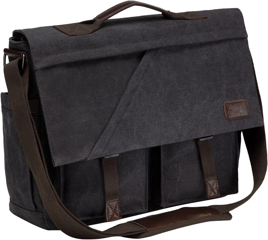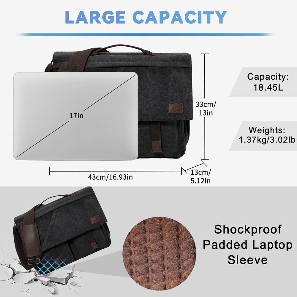 Kasgo Umhängetaschen Herren, Vintage Wasserabweisend Leinwand 17 Zoll Laptop Aktentasche Schultertas