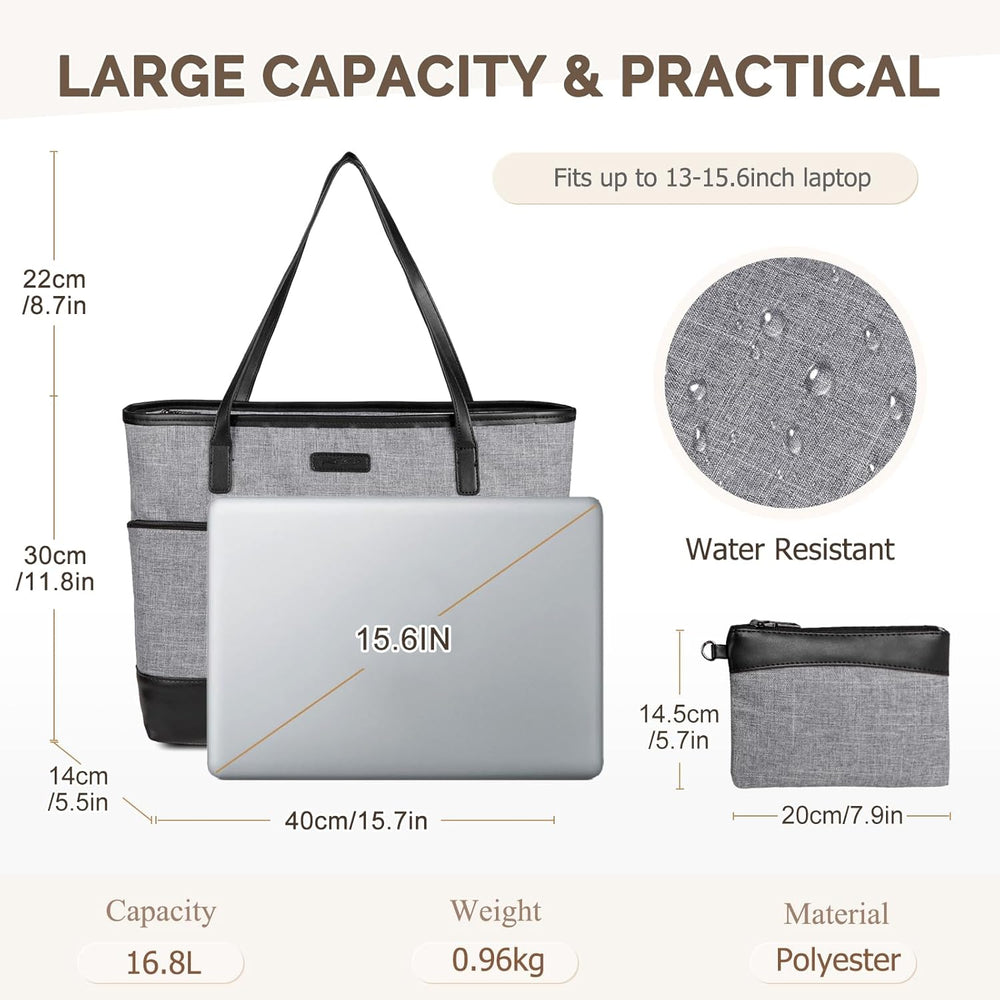 Kasgo Laptop Handtasche Damen, Gross 15.6 zoll Schultertasche Wasserabweisend Laptop Tasche Shopper