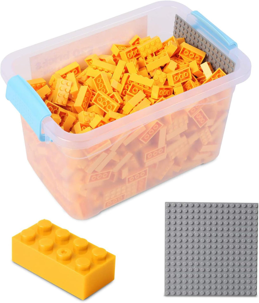 Bausteine - 520 Stück, Kompatibel zu Allen Anderen Herstellern - Inklusive Box und Grundplatte, Gelb