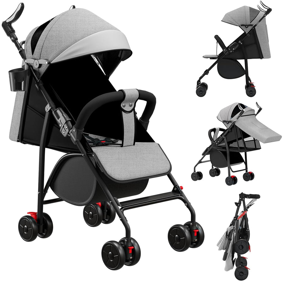 Kinderbuggy, Kinderwagen Zusammenklappbar, Reise-Kinderwagen mit Wattepads und Moskitonetzen (Grau)