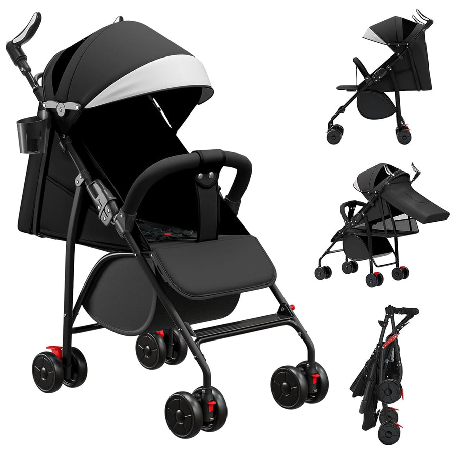 Kinderbuggy, Kinderwagen Zusammenklappbar, Reise-Kinderwagen mit Wattepads und Moskitonetzen (Schwar