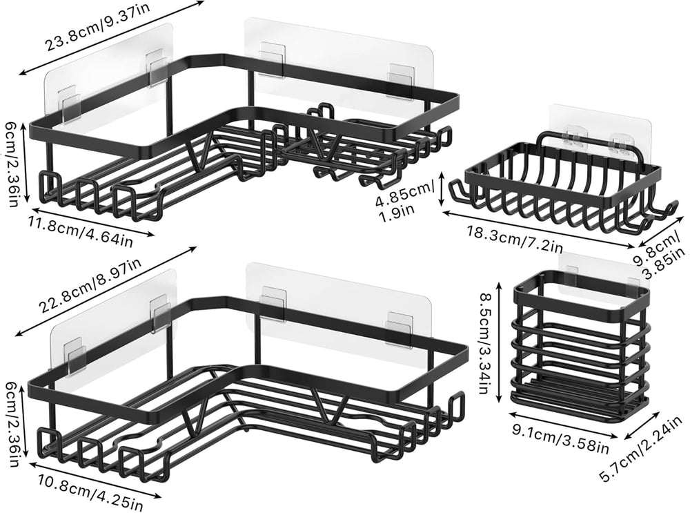 Kegii Duschablage Ecke Schwarz - 4 Stück Edelstahl Duschablage Ohne Bohren mit Seifenschale & Zahnbü