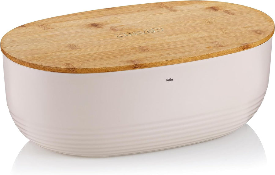 Kela 12061 Brotkasten, Schale mit Deckel, Kunststoff/ Bambus, 37,5 x 23 x 14 cm, Namur, Beige