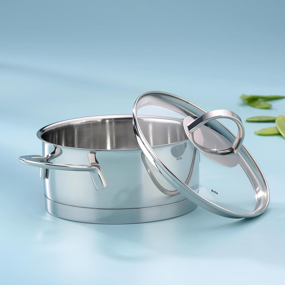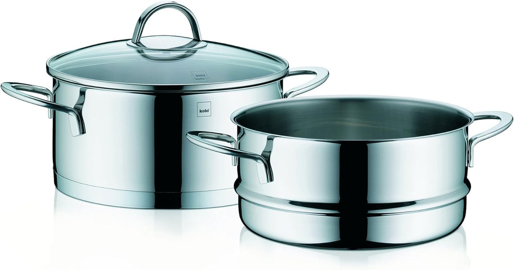 Kela 10994 Universaldünster mit Glasdeckel, Edelstahl, Induktionsgeeignet, 20 cm Durchmesser, 3,0 l