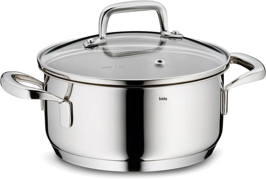 Kela 10955 Bratentopf, 1,5 l Fassungsvermögen, 16 cm Durchmesser, 18/10 Edelstahl mit Glanzoptik, In