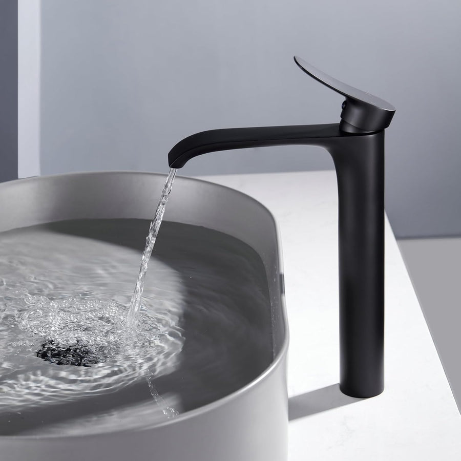 Kelelife Badarmatur - Waschtischarmatur aus messing, schwarze Malerei, hoher Auslauf Schwarz, Hoch,