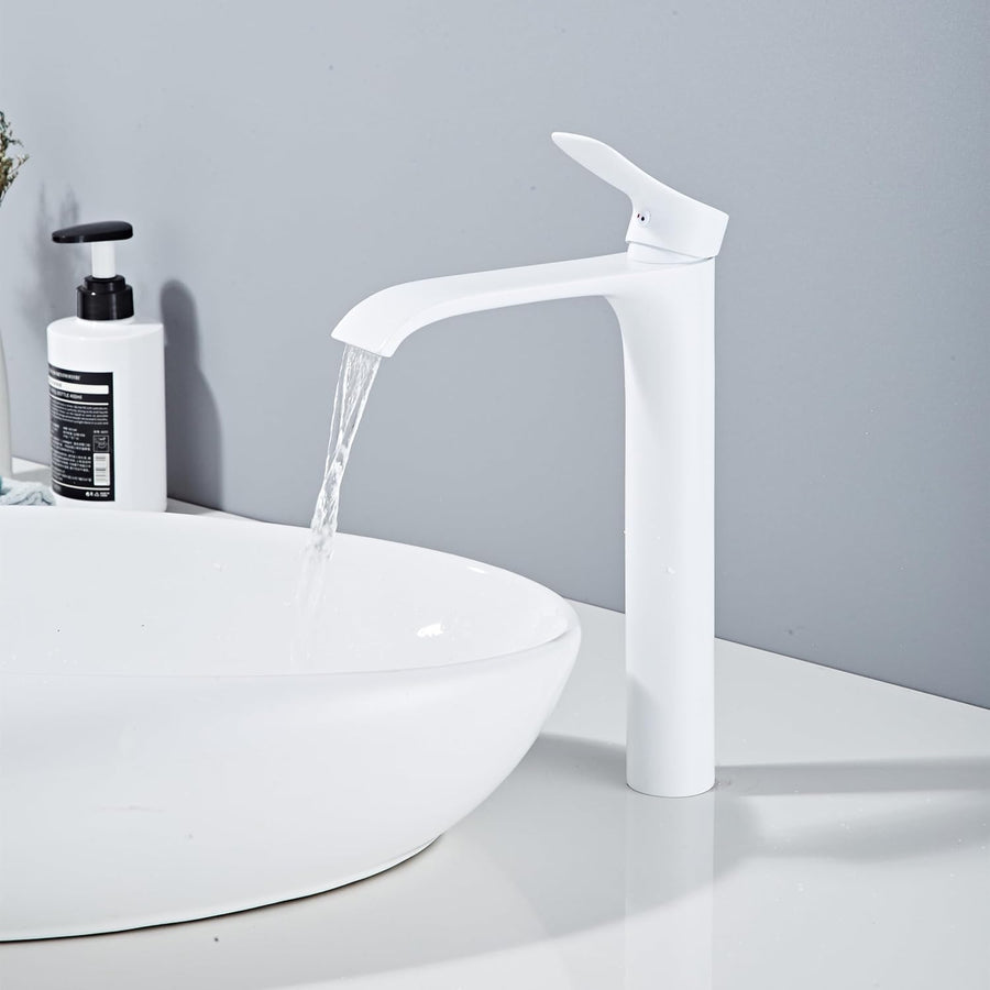 Bad Wasserhahn Weiss Wasserfall Badarmatur Hoch Waschtischarmatur Einhebel Mischbatterie aus Messing