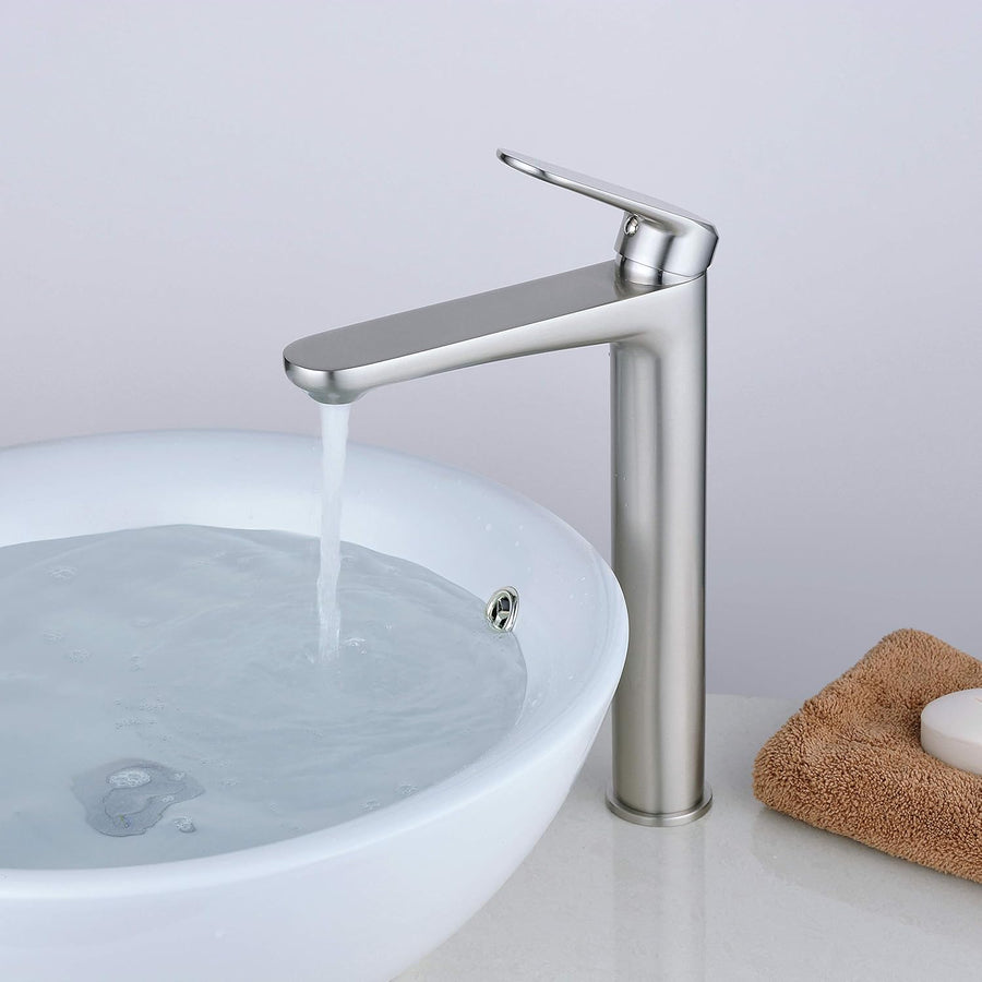 Hoch Bad Wasserhahn, Elegant Waschtischarmatur Mischbatterie für Badezimmer Waschbecken, Gebürstetes