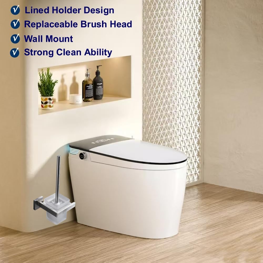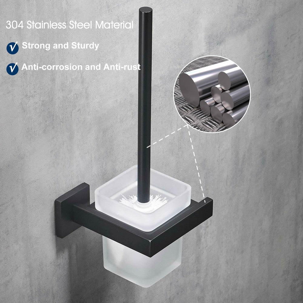 WC-Bürste und Halter Wand Toilettenbürste Mit Halterung, Schwarz, 304 Edelstahl und Mattglas für Bad