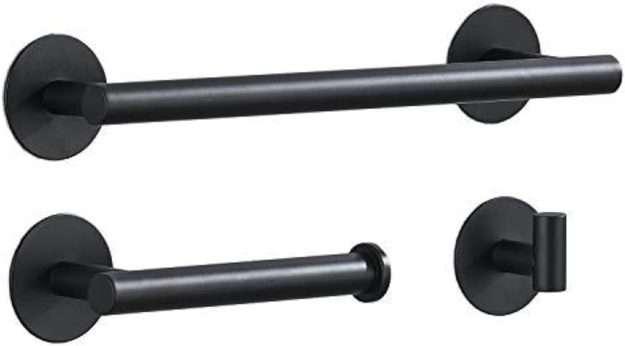 3 Stück Badezimmerzubehör Ohne Bohren - Schwarz Matt Klebstoff 30cm Handtuchhalter mit Toilettenpapi