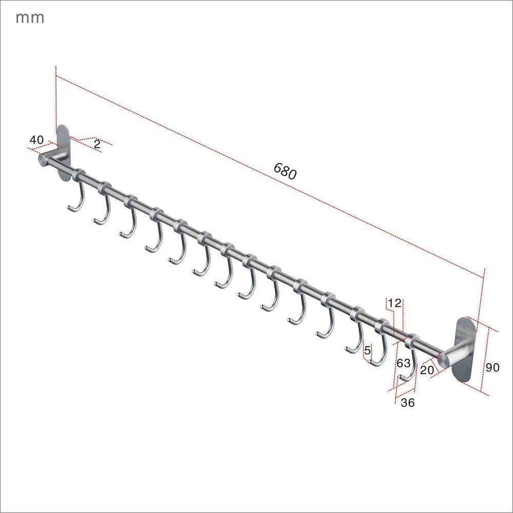 Kelelife Küchenreling Küchenutensilienhalter aus Edelstahl rostfrei Hängeleiste Pfannehalter Tassenh